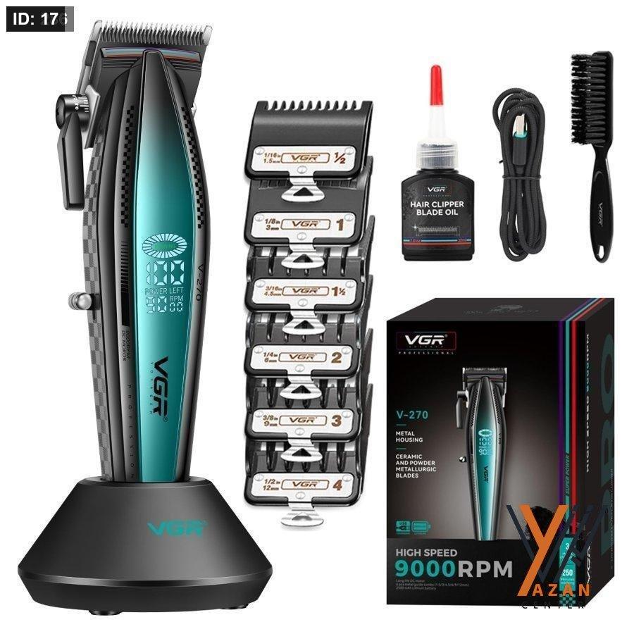 ماكينة قص شعر احترافية للاستخدام المنزلي وللحلاقة: ماكينة قص الشعر VGR 270 هي أداة قص شعر احترافية متميزة تتميز بشفرات سيراميكية ومعدنية بودرة لتشغيل حاد ومتين وبارد. مع 6 أمشاط توجيه (1.5 مم إلى 12 مم)، وأطوال قص قابلة للتعديل من 0.8 مم إلى 12 مم، ماكينة قص الشعر الاحترافية الخاصة بنا مثالية لإنشاء تلاشي جديد وتشذيب دقيق وتسريحات شعر أنيقة بسهولة