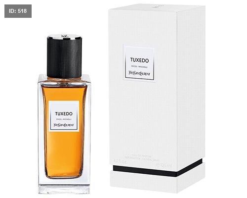 عطر توكسيدو من إيف سان لوران عطر تشيبر فاخر للجنسين تم إطلاقه في 2015 مستوحى من بدلة التوكسيدو الكلاسيكية البداية بورقة البنفسج والكزبرة وزيت البرغموت مع قلب من زيت الورد وزهر الوادي وزيت الفلفل الأسود وقاعدة من مستخلص العنبر والباتشولي وفانيليا بوربون يعطي إحساس بالأناقة والجرأة مناسب للمناسبات الخاصة والأمسيات الراقية ويدوم طويلاً على البشرة والملابس