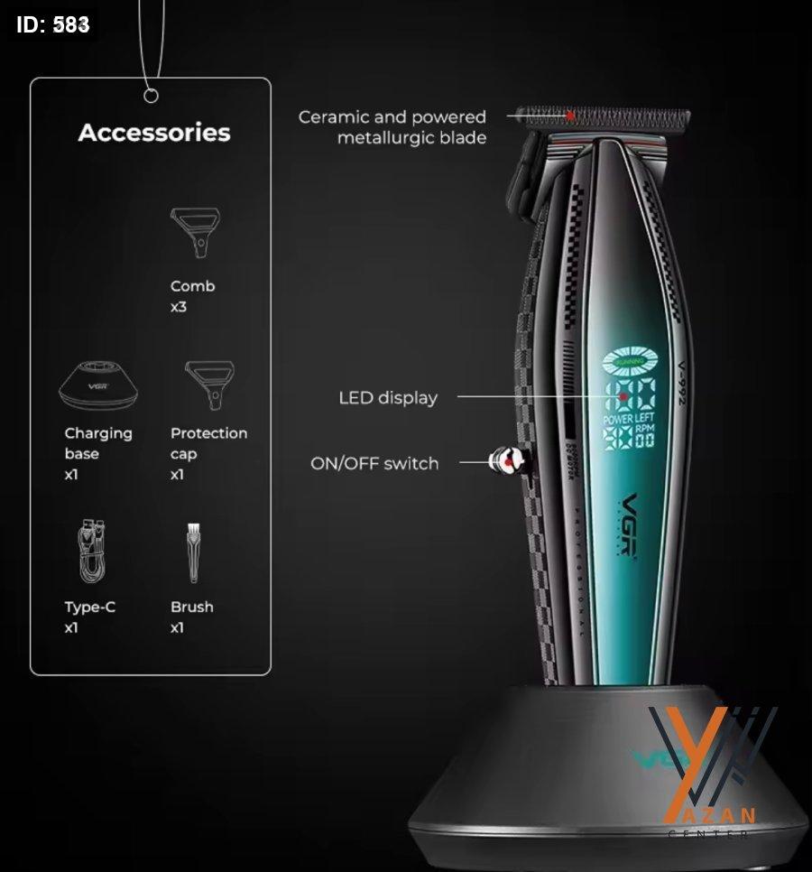 ماكينة تشذيب الشعر اللاسلكية Precision Outliner: مزودة بشفرات متطورة من السيراميك وDLC، تضمن ماكينة تشذيب الشعر VGR 992 قصات شعر دقيقة وناعمة واحترافية. مثالية للحلاقين ومصففي الشعر، حيث توفر خطوطًا حادة، وتلاشيًا واضحًا، وخطوطًا واضحة دون عناء.
