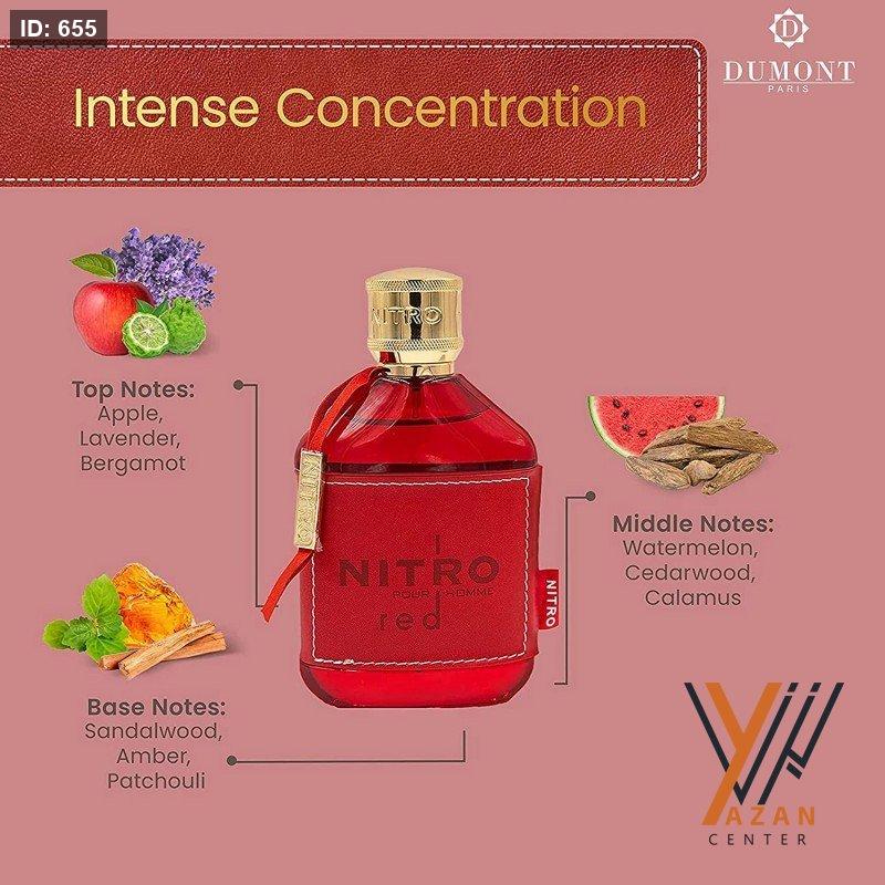 عطر نايترو ريد من دار ديمونت الإماراتية هو عطر رجالي أنيق يجمع بين الانتعاش والحضور القوي. تبدأ رائحته بلمسات منعشة من التفاح والبرغموت مع لمسة من الخزامى تمنحه طابعًا حيويًا، ثم يتدرج إلى قلب عطري غني بالبطيخ وخشب الأرز ليمنح العطر لمسة دافئة وعصرية. أما القاعدة فتغلف الحواس بمزيج راقٍ من العنبر وخشب الصندل والباتشولي لتترك أثراً ذكورياً ثابتاً يدوم طويلاً. هذا العطر مثالي للرجل العصري الذي يبحث عن إطلالة مميزة تجمع بين الحيوية والجاذبية في آن واحد.