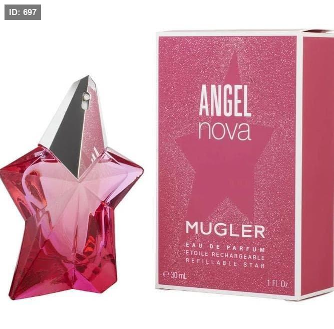 عطر انجل نوفا من موغلر صدر عام الفين وعشرين وهو عطر أنثوي عصري من عائلة الفواكه والزهور والأخشاب يبدأ برائحة التوت الأحمر والليتشي التي تعطيه لمسة فاكهية حلوة ومنعشة تشبه رائحة العصير الطازج ثم ينتقل إلى قلب غني برائحة وردة داماسك الفاخرة التي تضيف طابع أنثوي أنيق وجذاب وفي القاعدة تظهر نغمات خشب الأكجالاوود والبنزوين لتمنحه دفئا وعمقا يوازن الحلاوة في بدايته العطر يجمع بين الجاذبية والشبابية والثبات العالي مناسب للمناسبات الخاصة أو للأيام التي تريد فيها المرأة أن تلفت الأنظار برائحتها المميزة ويعطي إحساسا بالقوة والثقة والأنوثة